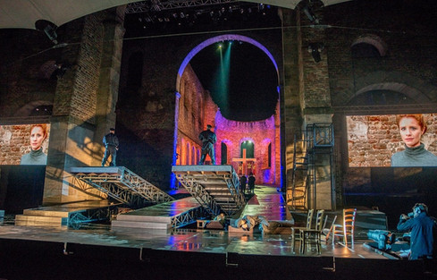 Die Bad Hersfelder Festspiele sind in Theaterkreisen als beliebtes Open Air Event bekannt. Hauptspielstätte ist seit Jahrzehnten die Stiftsruine, welche als die größte romanische Kirchenruine der Welt gilt. Unter Intendant Dieter Wedel haben die Festspiele an Bedeutung gewonnen, nicht zuletzt weil Wedel noch mehr bekannte Schauspieler aus Theater, Film und Fernsehen gewinnen konnte. So auch für die Uraufführung seiner Inszenierung "Luther - der Anschlag". Im Lutherjahr setzt sich diese mit der Widersprüchlichkeit von Luthers Charakter auseinander. Neben vielen bekannten Schauspielern wie Erol Sander, Elisabeth Lanz und Claude Oliver Rudolph übernahm Christian Nickel die Rolle des Luthers. Mareille Höppner war als Reporterin in Filmzuspielern zu sehen, die Wedel für das Stück produziert hatte. Diese wurden auf zwei LED Wänden links und rechts der Bühne regelmäßig im Verlauf des Stückes eingespielt. Zusätzlich wurden zeitweise Livebilder von zwei auf der Bühne ins Geschehen eingebundenen Fernsehkameras gezeigt. Für die Konzeption, Planung und Bau der notwendigen Liveregie wurde ich von den Festspielen Bad Hersfeld beauftragt. Es sollte überwiegend Broadcasttechnik eingesetzt werden. Das Konzept sollte die Bedienung der Zuspielung, Kameraaussteuerung und Liveschnitt durch nur einen Operator ermöglichen. Die Liveregie wurde für die Proben auf der Zuschauer-Tribüne aufgebaut. Zur Generalprobe und allen Aufführungen wurde sie dann in einen unter der Bühne befindlichen Raum umgebaut. Nach der Installation der Technik kümmerte ich mich auch um die Einarbeitung des Operators und war zur Generalprobe und Premiere als Support dabei.